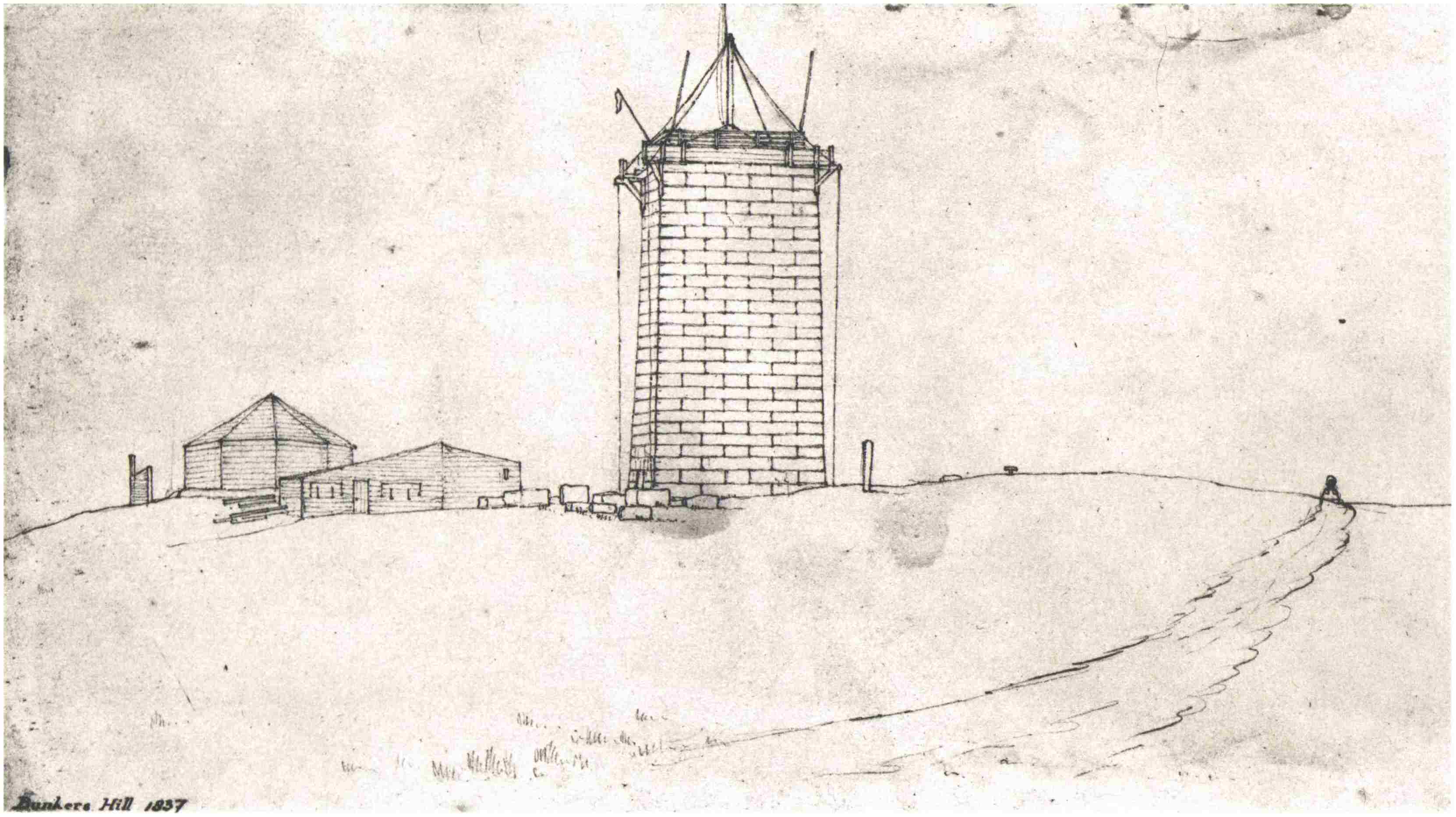 Bunker Hill Monument under construction in 1837