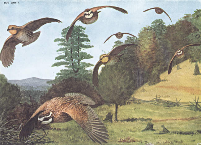 And we all know what he calls himself whenever he has his little say—and what he says of himself is gladly accepted everywhere. Bob White is a popular favorite among game birds on account of his attractive habits and the fact that he is to be found in almost all sections of the country—and wherever found he displays the qualities that make good hunting. He lives more in the open than the ruffed grouse, and by his admirers he is counted a finer game bird.
