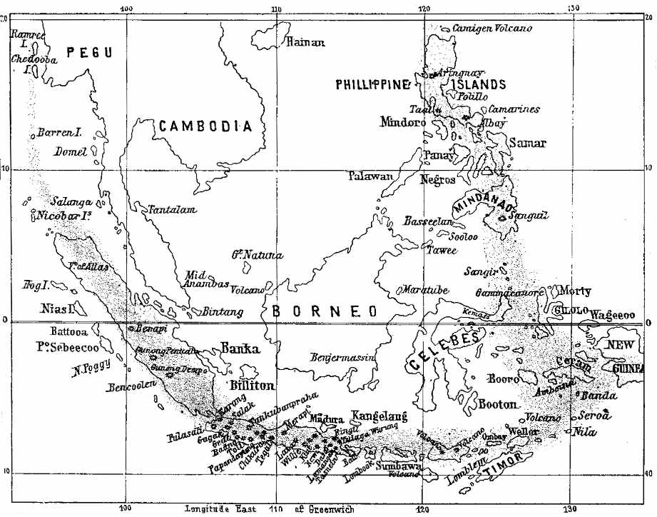 10. Report published by the Royal Society on the Eruption of Krakatoa[Pg 9]—drawn up by several authors (1885)—and the work on the same subject by Chev. Verbeek, and published by the Government of the Netherlands (1886). In these works all the phenomena connected with the extraordinary eruptions of Krakatoa in 1883 are carefully noted and scientifically discussed, and illustrated by maps and drawings.