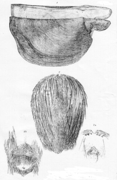 Body elongate, cordate, with a deep anterior grove and notch; covered above with minute hair-like spines, with scattered very elongated tubular minutely striated spines on the sides; the anterior groves and circumference of the vent with larger equal hair-like spines on each side; the under surface with a triangular disk of similar spines beneath the vent, and with elongated larger tubular spines.