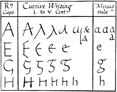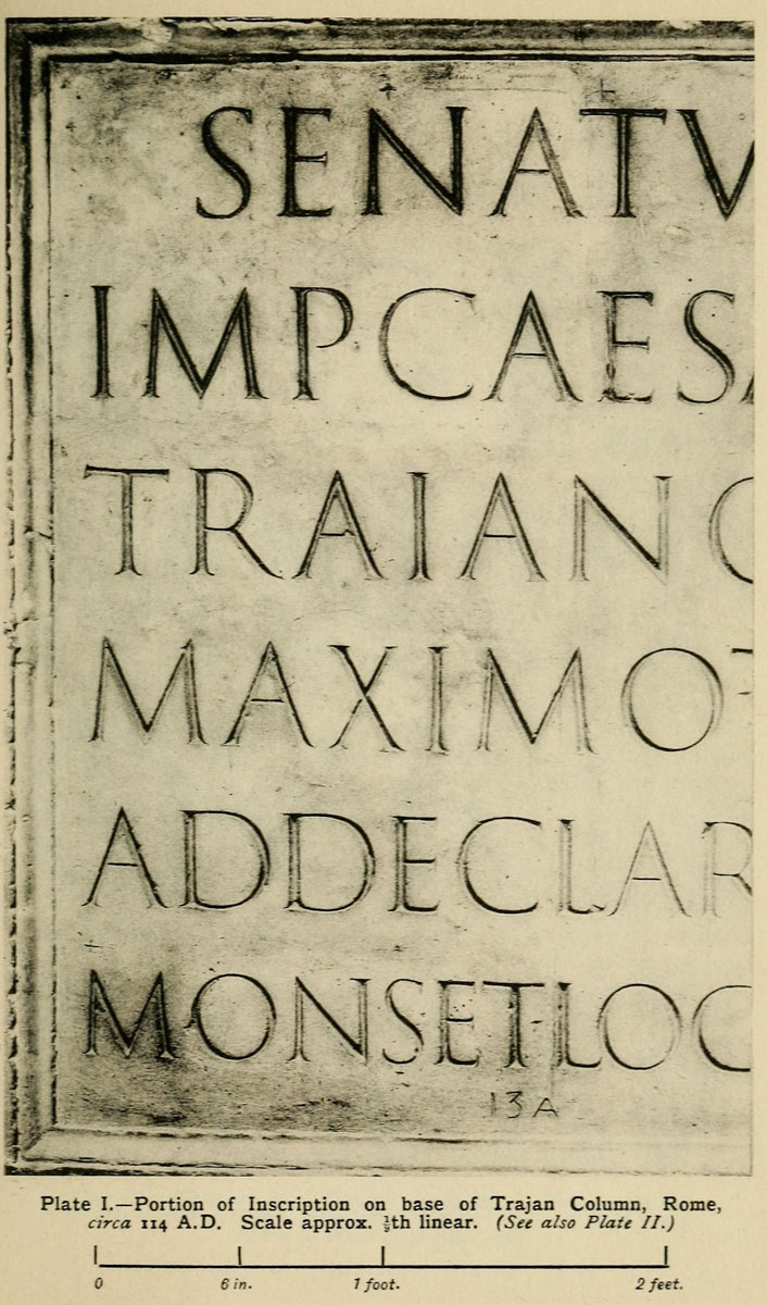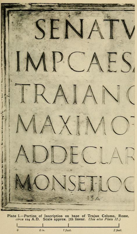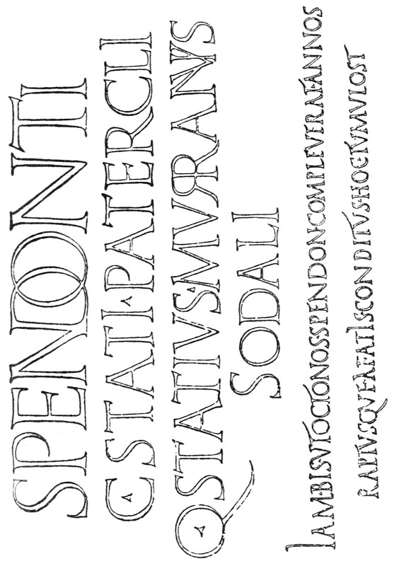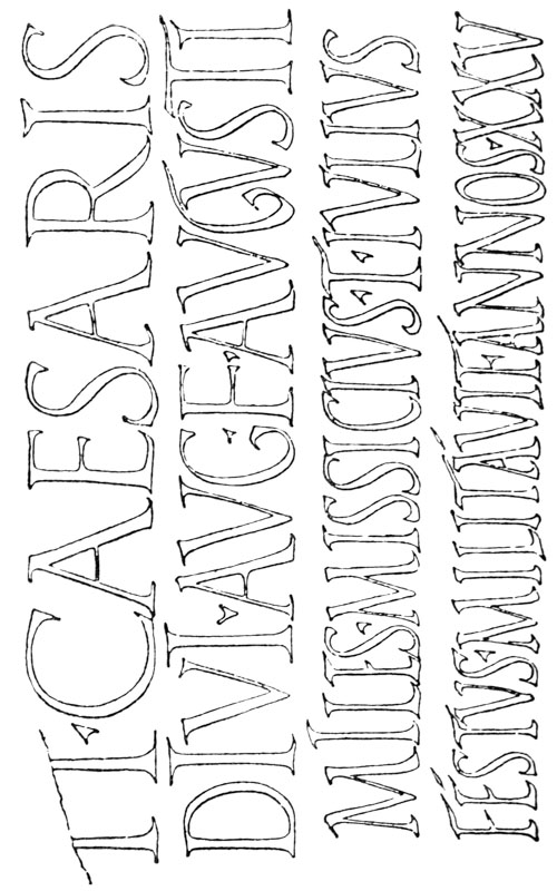 All fine monumental inscriptions and types are but forms of writing modified according to the materials to which they are applied. The Italian type-founders of the fifteenth century sought out fine examples of old writing as models, and for their capitals studied the monumental Roman inscriptions. Roman letters were first introduced into English inscriptions by Italian artists. Torrigiano, on the tombs he made for [p-xi] Henry VII. in Westminster Abbey and for Dr. Young at the Rolls Chapel, designed probably the most beautiful inscriptions of this kind to be found in England.