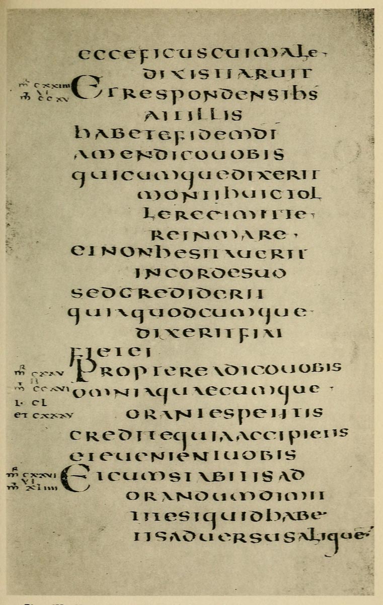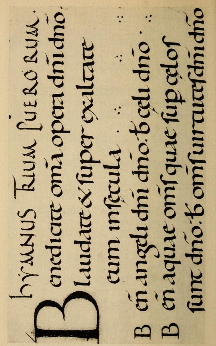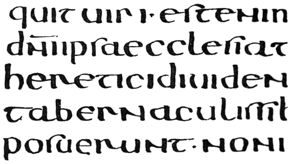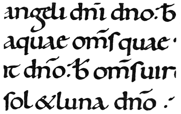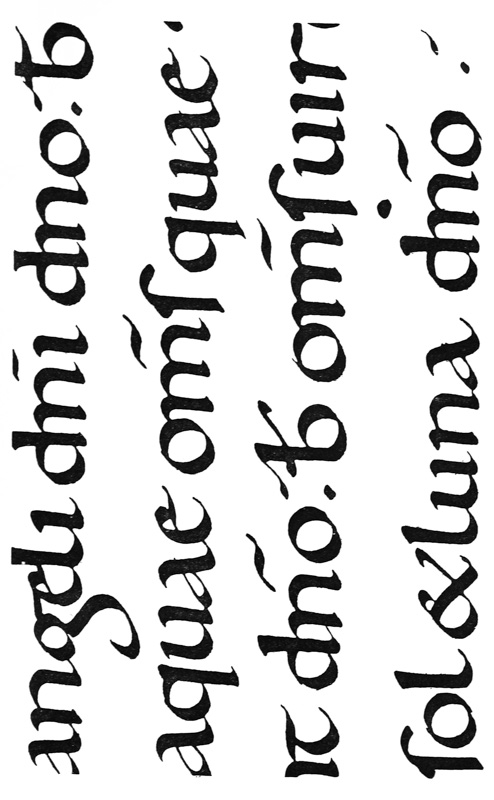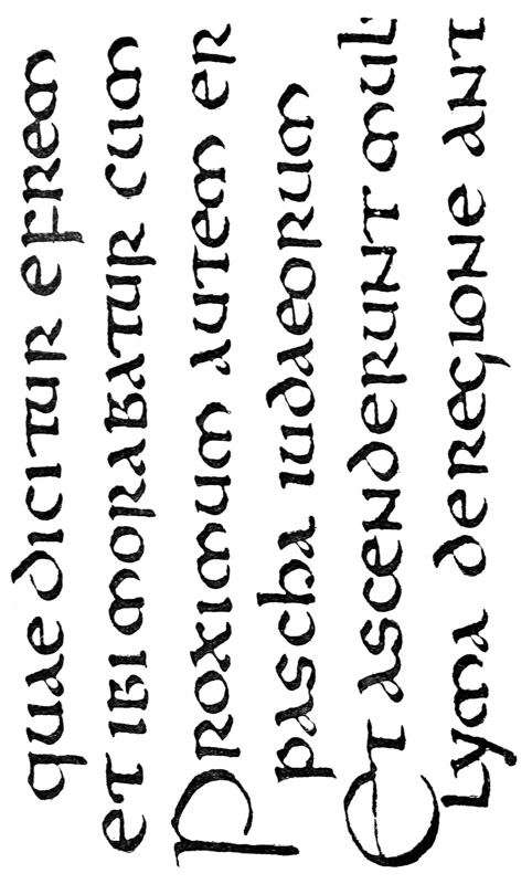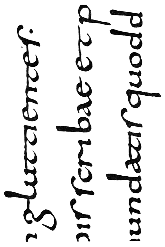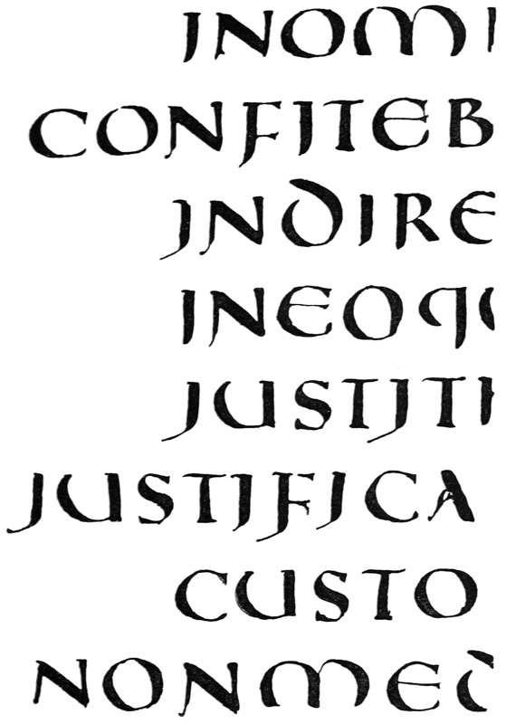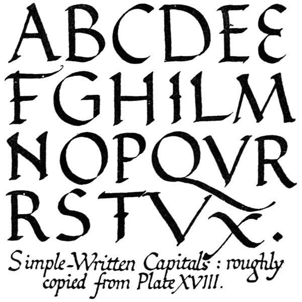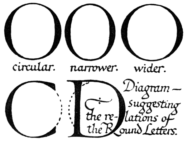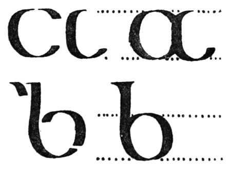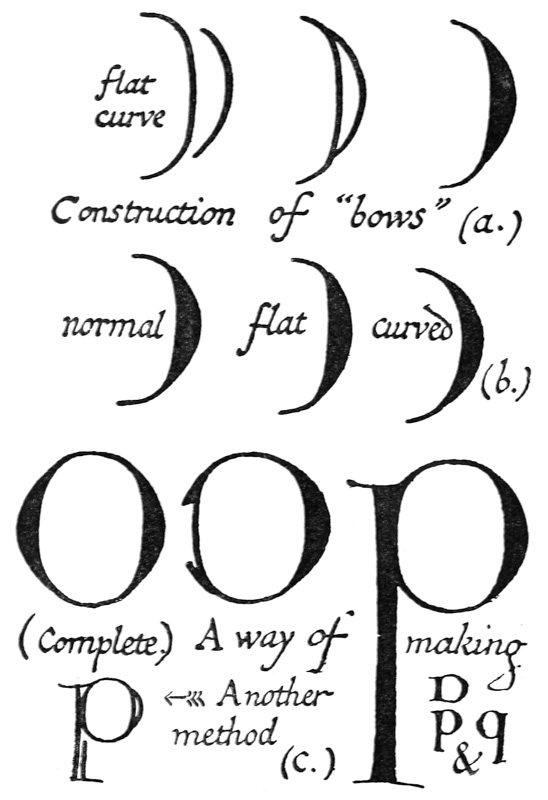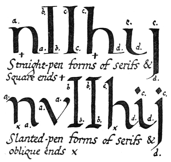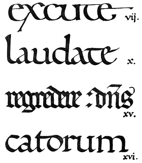 Yet Ordinary Writing and even scribbling has had, and still might have, a good influence on the art of the Letter maker, and at least the common use of pen, ink, & paper makes it a simple matter for any one to essay a formal or ‘book’ hand. A broad nib cut to give clean thick and thin strokes (without appreciable variation of pressure) will teach any one who cares to learn, very clearly and certainly. And though much practice goes to the making of a perfect MS., it is easier than people suppose to make really beautiful things by taking a little pains. As “copy book” hands simple, primitive pen-forms—such as the Uncial & Half-Uncial (pp. 38, 70)—afford the best training and permit [p-xvi] the cultivation of the freedom which is essential in writing: they prepare the way for the mastery of the most practical characters—the ROMAN CAPITAL, roman small-letter, & Italic—and the ultimate development of a lively and personal penmanship.