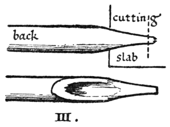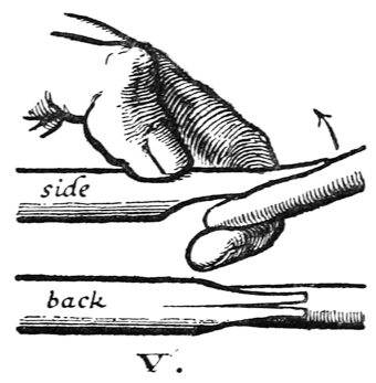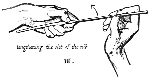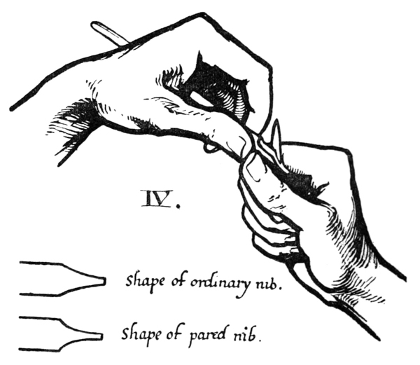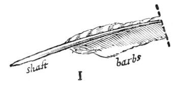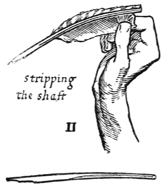 P. 59. Quills often have a sort of skin (which tends to make a ragged nib), this should be scraped off the back.