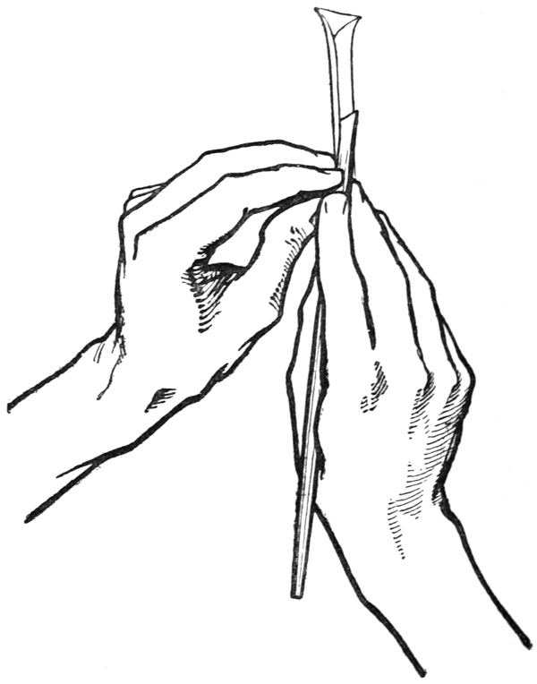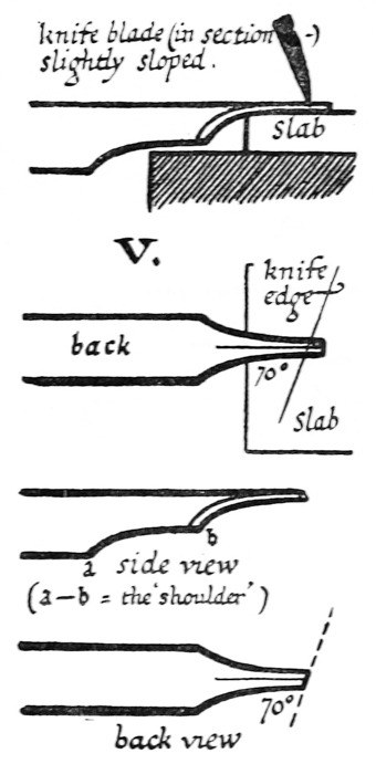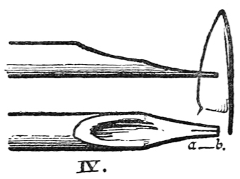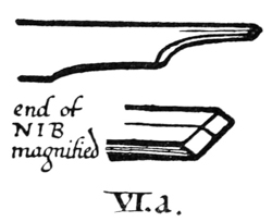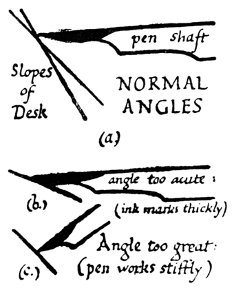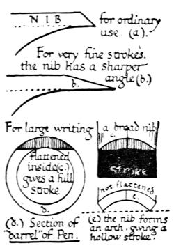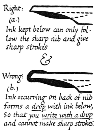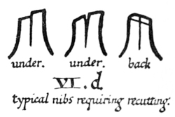 P. 64. A nib may be sharpened several times, before it is re-cut, by paring it underneath (fig. a).