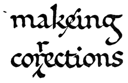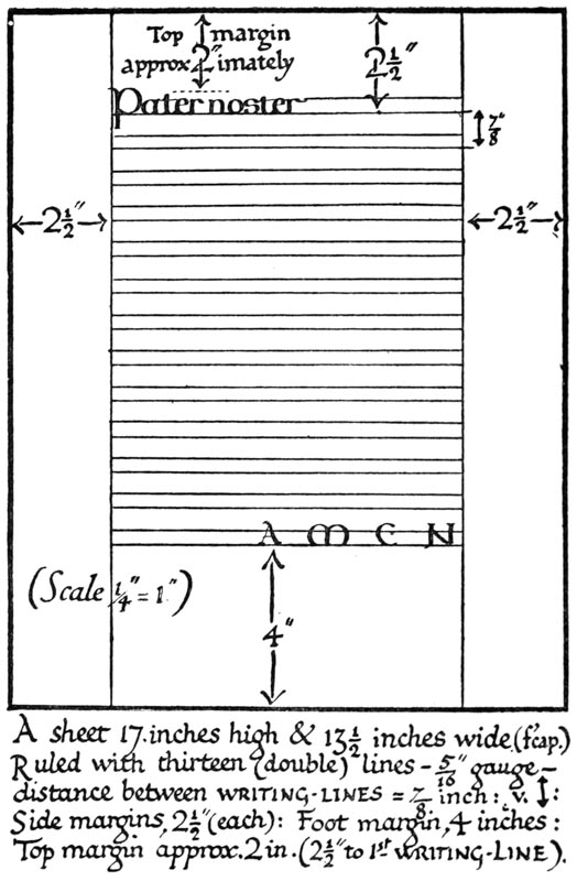 Generally this book has been planned as a sort of “guide” to models and methods for Letter-craftsmen and Students—more particularly for those who cannot see the actual processes of Writing, Illuminating, &c. carried out, and who may not have access to collections of MSS. Much of, if not all, the explanation is of the most obvious, but that, I hope, gives it more nearly the value of a practical demonstration. In describing methods and processes I have generally used the present tense—saying that they “are—”: this is to be taken as meaning that they are so in early MSS. and inscriptions, and in the practice of the modern school of scribes who found their work on them.