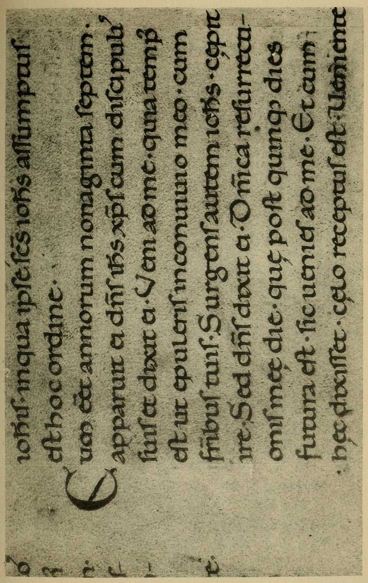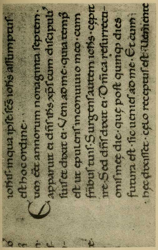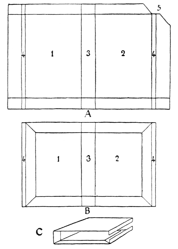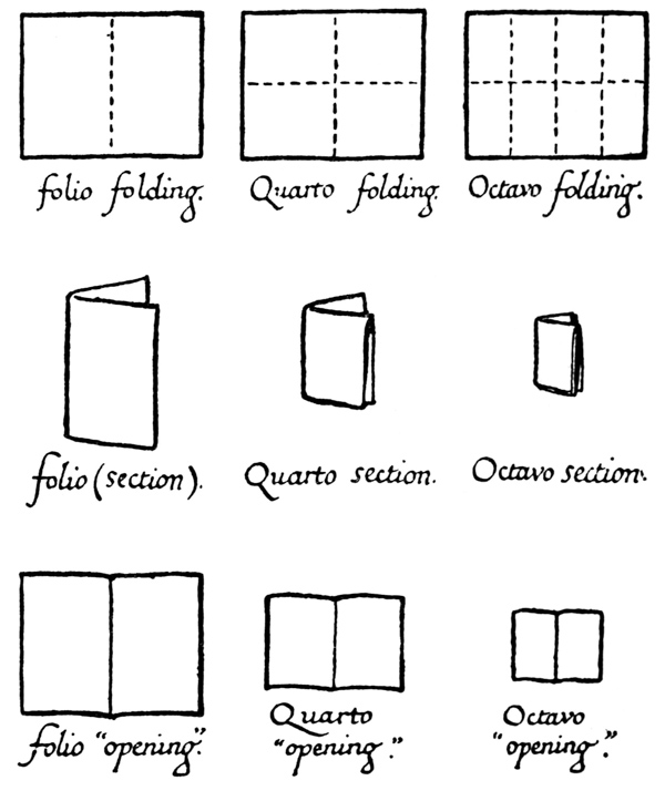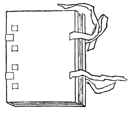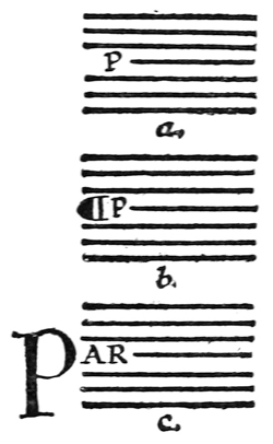 P. 109. The dots for lines were often pricked through the edges of the book-sheets which were cut off after ruling (fig. c).