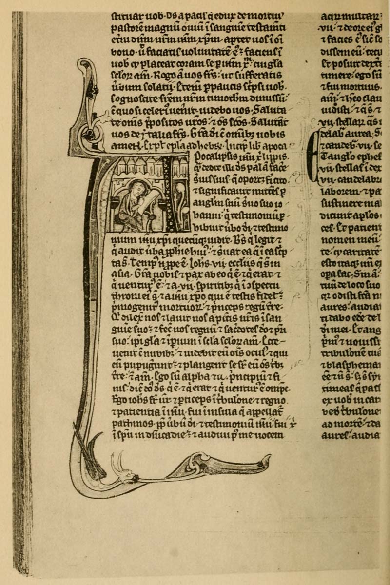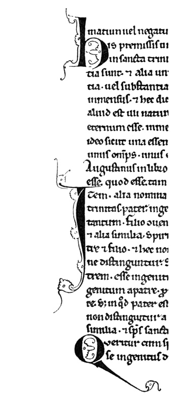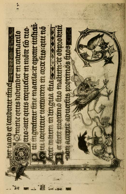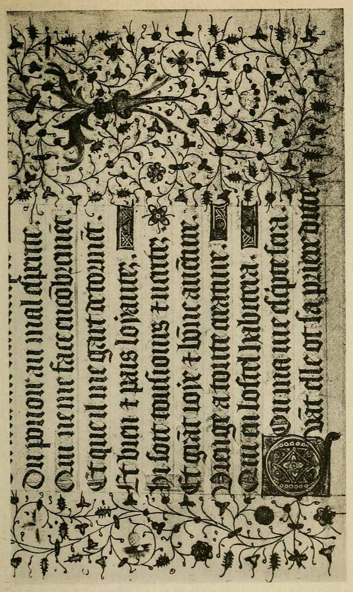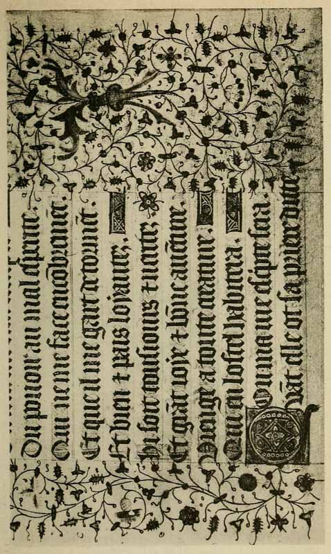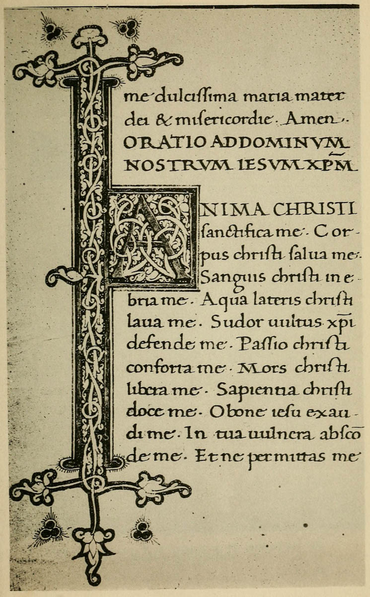 Early illuminated MSS. and printed books with woodcuts (or good facsimiles) may be studied with advantage by the would-be Illuminator, and he should if possible learn to draw from hedgerows and from country gardens. In his practice he should begin as a scribe making MS. books and then decorating them with simple pen & colour work. We may pass most naturally from writing to the decoration of writing, by the making and placing of initial letters. For in seeking first a fine effectiveness we may put readableness before “looks” and, generally, make a text to read smoothly, broken only by its natural division into paragraphs, chapters, and the like. But these divisions, suggesting that a pause in reading is desirable, suggest also that [p-xvii] a mark is required—as in music—indicating the “rest”: this a large capital does most effectively.