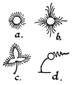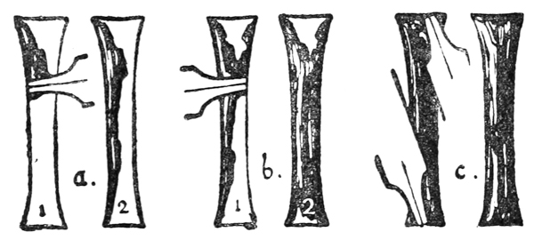 P. 118. The spread or wedge-shaped thin stroke, sometimes very strongly marked, is common in early forms (fig. d).