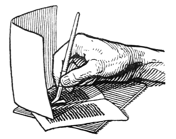 P. 481. A small writing is often the most practical—in the matter of speed in reading and less bulk in the MS., besides speed in the writing of it—but it is more difficult for the beginner to write it well and it is apt to lose some of the virtues of formal penmanship (see Fine-pen writing pp. 59, 86, 311, 324, 482).