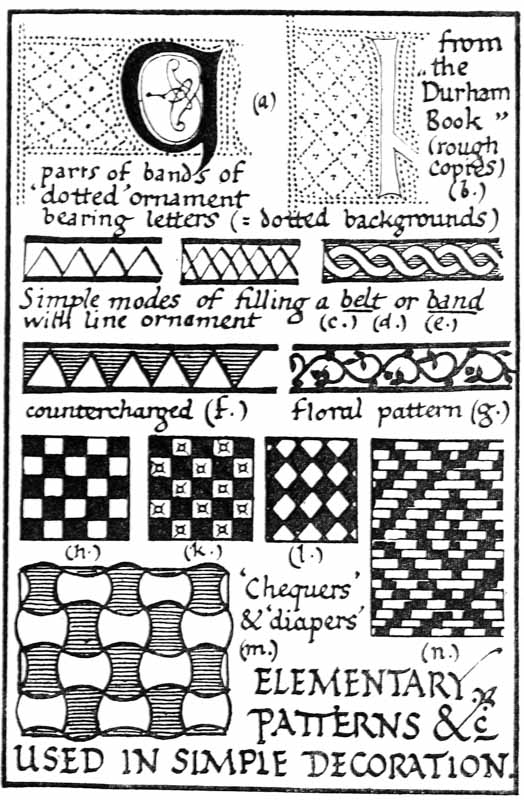 Endeavouring to attain this freedom we may make Rules and Methods serve us (see p. 221), knowing that Rules are only Guides and that Methods are suggested by the work itself: from first to last our necessary equipment consists in good models, good tools, & a good will. Within the limits of our craft we cannot have too much freedom; for too much fitting & planning makes the work lifeless, and it is conceivable that in the finest work the Rules are concealed, and that, for example, a MS. might be most beautiful without ruled lines and methodical arrangement (see p. 343). But the more clearly we realize our limitations the more practical our work. And it is rather as a stimulus to definite thought—not as an embodiment of hard and fast rules—that various methodical plans & tables of comparison & analysis are given in this book. It is well to recognize at once, the fact that mere taking to pieces, or analysing, followed by “putting together,” is only a means of becoming acquainted with the mechanism of construction, and will not reproduce the original beauty of a thing: it is an education for work, but all work which is honest and straightforward has a beauty and freshness of its own.