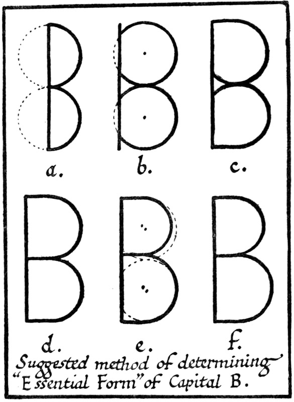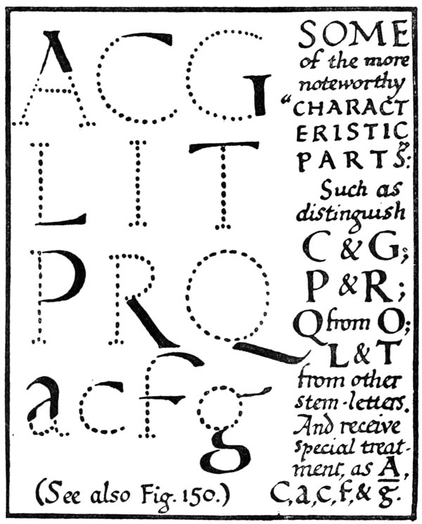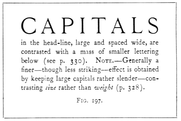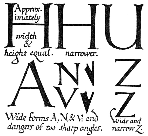 P. 324. Commonly letters are made more slender in proportion as they are made larger, and it is generally not desirable (or possible) in practical work to have exactly similar proportions in large and small lettering.