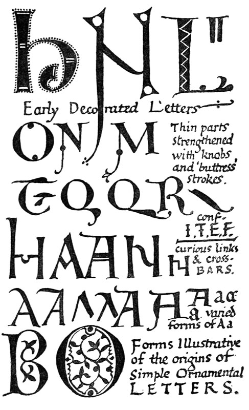 P. 208. Ornamental Letter forms may consist of flourishes, patterns, leaves, flowers, &c. (see fig. f).