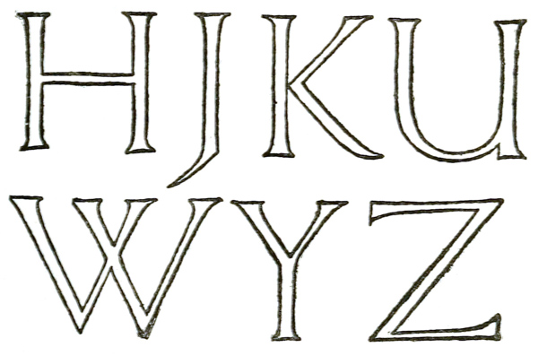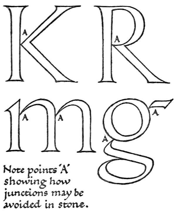 This volume is remarkable for the way in which its subject seems to be developed inevitably. There is here no collection of all sorts of lettering, some sensible and many eccentric, for us to choose from, but we are shown the essentials of form and spacing, and the way is opened out to all who will devote practice to it to form an individual style by imperceptible variations from a fine standard.