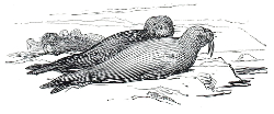 The events of next day well illustrate the uncertainties of ice navigation. At 2 a.m. the ships had slowly struggled northwards until they were abeam of Cape Victoria, but there the ice closed in and “nipped” the ships close inshore under the cliffs. Rudder and screw were again raised to save them from the dangerous pressure, which increased till the floes, sliding one under the other, were [20] forced landwards completely under the ship. At that moment nothing could be more unpromising than the prospects of the expedition, and yet, twenty minutes afterwards we were steaming cheerily along through a good lead towards Franklin and Pierce Bay. By breakfast time we had crossed to the north-eastern shore of the bay, and found further progress checked for the time by floes close packed against the rugged headlands to the north. As the ships were secured to the edge of a broad flat floe lying between an island and the high conglomerate cliffs of the mainland, several walrus were seen lying on a fragment of floe about a mile off. Their flesh would make a most valuable store of food for our dogs, who had been living almost exclusively on preserved Australian meat, for they disliked dog biscuit. Accordingly, a whale-boat with a harpoon gun in her bows was lowered and manned. It was necessary to make a long detour. New ice forming in the shadow of the cliffs impeded our progress and rendered a noiseless attack impossible. Our game, however, paid no attention to the noise we made scraping the ice with the oars and breaking a road with a paddle. We soon got close enough to see that there were three of them lying close together. Occasionally one or other would rear himself slowly up, displaying his double-lobed head and long gleaming tusks, scratch his side lazily with his huge flipper, and fling himself down again with a satisfied grunt beside his slumbering companions. They lay on the edge of a floe. We steered for the largest of the three, and at length the broad arrow-head of the harpoon, projecting from the muzzle of the gun, was within five yards of the beast. Then, with the flash, the steel buries itself deep in his side, a stream of blood spurts on the snow, and all three walrus start up and heave themselves upright before plunging into the water, looking as formidable game as any post-diluvian sportsman could desire, but evidently too much frightened to attack. A well-aimed bullet struck our victim’s throat and shortened his death-struggle. Ere long the drag on the harpoon line slackened, and the huge carcase was drawn to the surface and towed slowly to the ship. It measured twelve and a-half feet from nose to tail, eleven and a-half in girth. The tusks, eighteen inches from gum to point, gave the creature a savage appearance, but their use was to dig up the molluscs on which he fed, or to hook himself up on to the ice floes. The dogs were not alone in their appreciation of fresh meat. We ourselves found some steaks by no means unpalatable though desperately tough, and for some days walrus liver figured upon our breakfast-table.