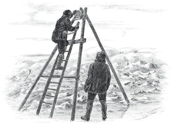 Numerous supporting sledges, now travelling invariably in the hours called night, arrived from Greenland or Cape Joseph Henry, filled up with stores, and left again, each fully occupied with its own work, and only catching an occasional glimpse of what the others were doing.