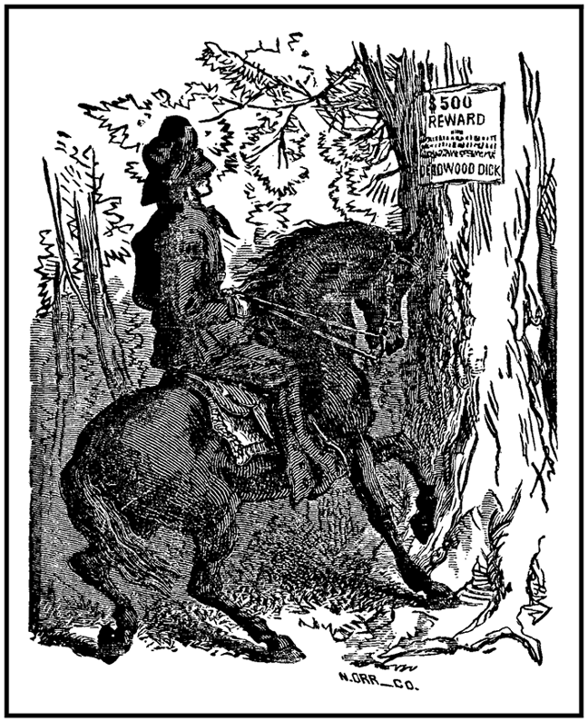 Slowly, over and over, Deadwood Dick, outlaw, road-agent and outcast, read the notice, and then a wild sardonic laugh burst from beneath his mask—a terrible, blood-curdling laugh, that made even the powerful animal he bestrode start and prick up its ears.