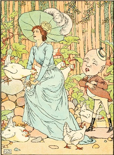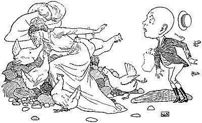 | Once, among the Bong-trees walking Where the early pumpkins grow, To a little heap of stones Came the Yonghy-Bonghy-Bò. There he heard a Lady talking, To some milk-white Hens of Dorking,— “’Tis the Lady Jingly Jones! “On that little heap of stones “Sits the Lady Jingly Jones!” Said the Yonghy-Bonghy-Bò, Said the Yonghy-Bonghy-Bò. |