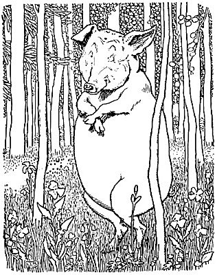 | Pussy said to the Owl, “You elegant fowl! How charmingly sweet you sing! O let us be married! too long we have tarried: But what shall we do for a ring?” They sailed away for a year and a day, To the land where the Bong-tree grows, And there in a wood a Piggy-wig stood, With a ring at the end of his nose. His nose, His nose, With a ring at the end of his nose. |