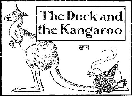 | Said the Duck to the Kangaroo, “Good gracious! how you hop! Over the fields and the water too, As if you never would stop! My life is a bore in this nasty pond, And I long to go out in the world beyond! I wish I could hop like you!” Said the Duck to the Kangaroo. |