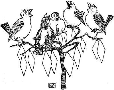 | Calico Pie, The Little Birds fly Down to the calico tree, Their wings were blue, And they sang “Tilly-loo!” Till away they flew,— And they never came back to me! They never came back! They never came back! They never came back to me! |