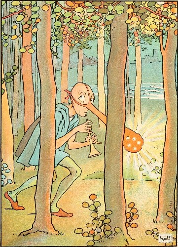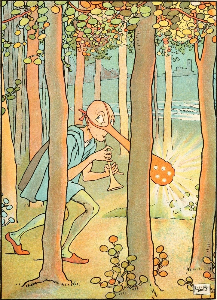 | Then, through the vast and gloomy dark, There moves what seems a fiery spark, A lonely spark with silvery rays Piercing the coal-black night,— A meteor strange and bright:— Hither and thither the vision strays, A single lurid light. Slowly it wanders,—pauses,—creeps,— Anon it sparkles,—flashes and leaps; And ever as onward it gleaming goes A light on the Bong-tree stems it throws. And those who watch at that midnight hour From Hall or Terrace, or lofty Tower, Cry, as the wild light passes along,— “The Dong!—the Dong! “The wandering Dong through the forest goes! “The Dong! the Dong! “The Dong with a luminous Nose!” Long years ago The Dong was happy and gay, Till he fell in love with a Jumbly Girl Who came to those shores one day. For the Jumblies came in a Sieve, they did,— Landing at eve near the Zemmery Fidd Where the Oblong Oysters grow, And the rocks are smooth and gray. And all the woods and the valleys rang With the Chorus they daily and nightly sang,— “Far and few, far and few, Are the lands where the Jumblies live; Their heads are green, and their hands are blue, And they went to sea in a Sieve.” |