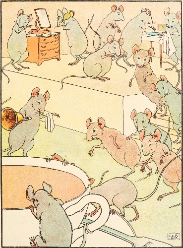 | Calico Ban, The little Mice ran, To be ready in time for tea, Flippity flup, They drank it all up, And danced in the cup,— But they never came back to me! They never came back! They never came back! They never came back to me! |