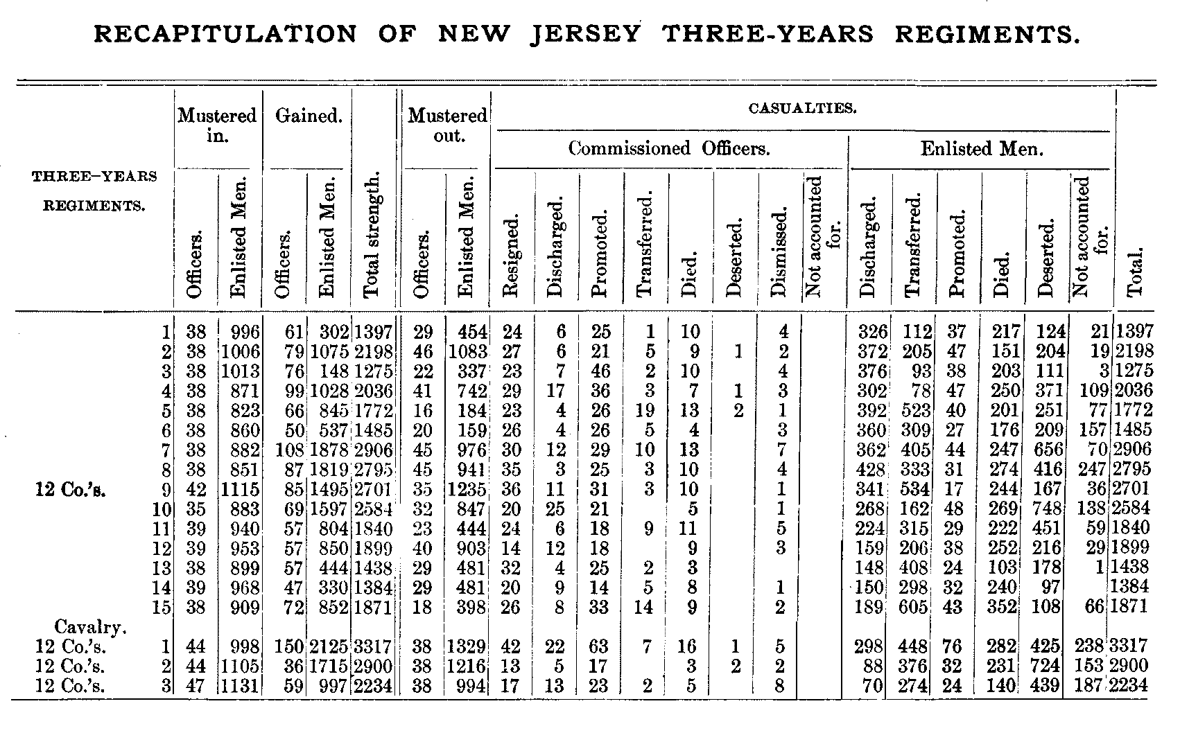 RECAPITULATION OF NEW JERSEY THREE-YEARS REGIMENTS.