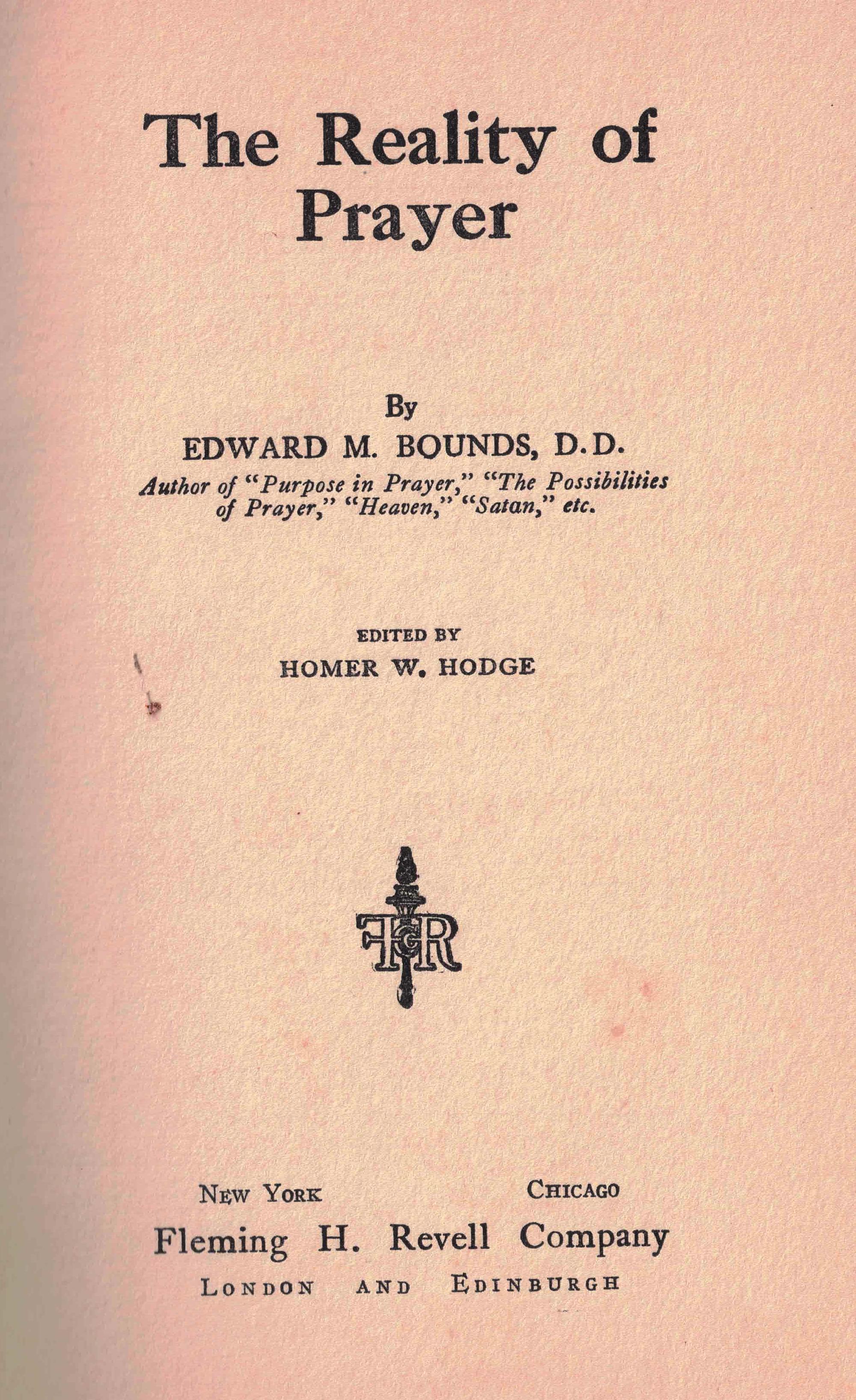 During the last twenty-five years of the nineteenth century and a score of years of the twentieth, there lived and died three great men of God whom I knew—men whom God has doubtless numbered among the foremost of His heavenly host. The first was Edward McKendree Bounds, author of this present volume and the other “Spiritual Life” Books. The second was Claud L. Chilton, minister for many years in the Methodist Episcopal Church, South, and a musical composer of religious music of considerable note. The third, Clement C. Cary, preacher and editor, lost his life in an automobile accident in 1922. The fourth was Dr. B. F. Haynes, minister, editor and author, who died in Nashville, in 1923.