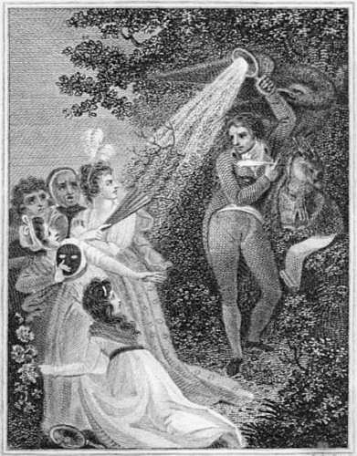 | The breezy morning breath’d perfume, The wak’ning flow’rs unveil’d their bloom; Up with the sun, from short repose, Gay HEALTH, and lusty LABOUR, rose; The milk-maid carol’d at her pail, And shepherds whistled o’er the dale; When LOVE, who led a rural life, Remote from bustle, state, and strife, Forth from his thatch-roof’d cottage stray’d, And stroll’d along the dewy glade. A nymph, who lightly tripp’d it by, To quick attention turn’d his eye; He mark’d the gesture of the fair, Her self-sufficient grace and air; [Pg 115]Her steps that mincing meant to please, Her study’d negligence and ease; And curious to inquire what meant This thing of prettiness and paint, Approaching spoke, and bow’d observant: The lady, slightly—“Sir, your servant.” ‘Such beauty in so rude a place! Fair one, you do the country grace; At court, no doubt, the public care, But LOVE has small acquaintance there.’ “Yes, sir,” reply’d the flutt’ring dame, “This form confesses whence it came; But dear VARIETY, you know, Can make us pride and pomp forego; My name is VANITY: I sway The utmost islands of the sea; Within my court all honour centers, I raise the meanest soul that enters, Endow with latent gifts and graces, And model fools for posts and places. [Pg 116] “As VANITY appoints at pleasure, The world receives its weight and measure; Hence all the grand concerns of life, Joys, cares, plagues, passion, peace, and strife. “Reflect how far my pow’r prevails, When I step in where NATURE fails: And ev’ry breach of sense repairing, Am bounteous still, where heav’n is sparing. “But chief, in all their arts and airs, Their playing, painting, pouts, and pray’rs, Their various habits and complexions, Fits, frolics, foibles, and perfections, Their robing, curling, and adorning, From noon to night, from night to morning, From six to sixty, sick or sound, I rule the female world around.”— ‘Hold there a moment,’ CUPID cry’d, ‘Nor boast dominion quite so wide; [Pg 117]Was there no province to invade, But that by love and meekness sway’d; All other empire I resign, But be the sphere of beauty mine. ‘For in the downy lawn of rest, That opens on a woman’s breast, Attended by my peaceful train, I choose to live, and choose to reign. ‘Far-sighted FAITH I bring along, And TRUTH, above an army strong, And CHASTITY, of icy mould, Within the burning tropics cold; And LOWLINESS, to whose mild brow The pow’r and pride of nations bow; And MODESTY, with down-cast eye, That lends the morn her virgin dye; And INNOCENCE, array’d in light, And HONOUR, as a tow’r upright; With sweetly winning graces, more Than poets ever dreamt of yore; [Pg 118]In unaffected conduct free, All smiling sisters, three times three; And rosy PEACE, the cherub bless’d, That nightly sings us all to rest. ‘Hence, from the bud of NATURE’S prime, From the first step of infant time, Woman, the world’s appointed light, Has skirted ev’ry shade with white; Has stood for imitation high, To ev’ry heart, and ev’ry eye; From ancient deeds of fair renown, Has brought her bright memorials down; To time affix’d perpetual youth, And form’d each tale of love and truth. ‘Upon a new PROMETHEAN plan, She moulds the essence of a man, Tempers his mass, his genius fires, And as a better soul inspires. ‘The rude she softens, warms the cold, Exalts the meek, and checks the bold; [Pg 119]Calls SLOTH from his supine repose, Within the coward’s bosom glows; Of pride unplumes the lofty crest, Bids bashful merit stand confess’d; And like coarse metal from the mines, Collects, irradiates, and refines; The gentle science she imparts, All manners smooths, informs all hearts; From her sweet influence are felt, Passions that please, and thoughts that melt. To stormy rage she bids controul, And sinks serenely on the soul; Softens DUCALION’S flinty race, And tunes the warring world to peace. ‘Thus arm’d to all that’s light and vain, And freed from thy fantastic chain, She fills the sphere, by heav’n assign’d, And, rul’d by me, o’er-rules mankind.’ He spoke.—The nymph impatient stood, And, laughing, thus her speech renew’d: [Pg 120] “And pray, sir, may I be so bold, To hope your pretty tale is told; And next demand without a cavil, What new UTOPIA do you travel? Upon my word, these high-flown fancies Shew depth of learning in romances. Why, what unfashion’d stuff you tell us, Of buckram dames, and tiptoe fellows! Go, child, and when you’re grown maturer, You’ll shoot your next opinion surer. “O, such a pretty knack at painting, And all for soft’ning, and for sainting! Guess now, who can, a single feature, Thro’ the whole piece of female nature: Then, mark! my looser hand may fit The lines too coarse for love to hit. “’Tis said, that woman prone to changing, Thro’ all the rounds of folly ranging, On life’s uncertain ocean riding, No reason, rule, nor rudder guiding, [Pg 121]Is like the comet’s wand’ring light, Eccentric, ominous, and bright; Tractless and shifting as the wind, A sea whose fathom none can find; A moon, still changing and revolving, A riddle, past all human solving; A bliss, a plague, a heav’n, a hell, A——something, that no man can tell. “Now learn a secret from a friend, But keep your counsel and attend: “Tho’ in their tempers thought so distant, Nor with their sex, nor selves consistent, ’Tis but the diff’rence of a name, And ev’ry woman is the same. For as the world, however vary’d, And thro’ unnumber’d changes carry’d, Of elemental modes and forms, Clouds, meteors, colours, calms, and storms; Tho’ in a thousand suits array’d, Is of one subject matter made; [Pg 122]So, sir, a woman’s constitution, The world’s enigma, finds solution. And let her form be what you will, I am the subject essence still. “With the first spark of female sense, The speck of being, I commence; Within the womb make fresh 