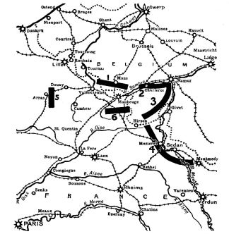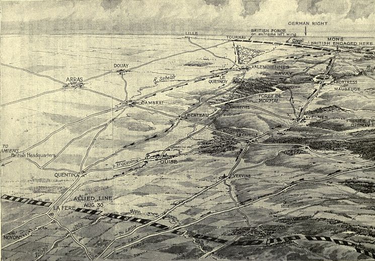 Now we are able to understand the terrible peril of the Allies. The French line along the Meuse and Sambre could only be held so long as Namur was able to resist. Now that it had fallen the line was broken, and a million men were on the verge of disaster.
