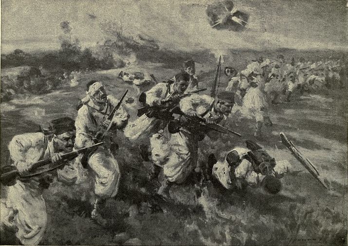 Charge of the Turcos near Charleroi. From the picture by Dudley Tennant.