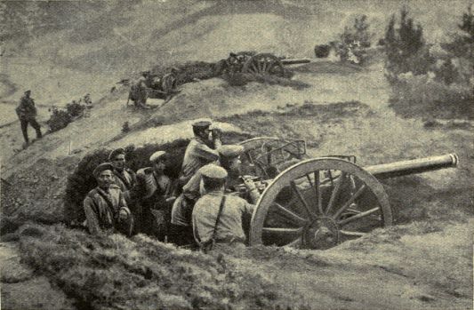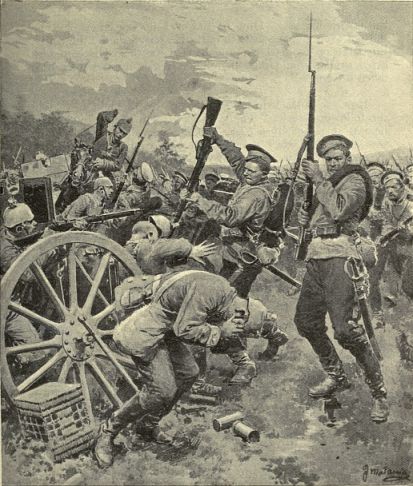 French artillery is generally thought to be the best in Europe. What is known as the 75-millimetre gun[5] is a very rapid quick-firer, and is wonderfully accurate; no better piece of artillery has ever been known in the history of warfare. French generals show great ability in using their artillery to cover the advance of infantry.