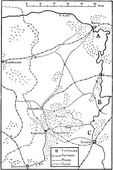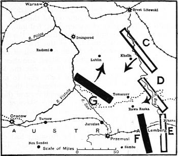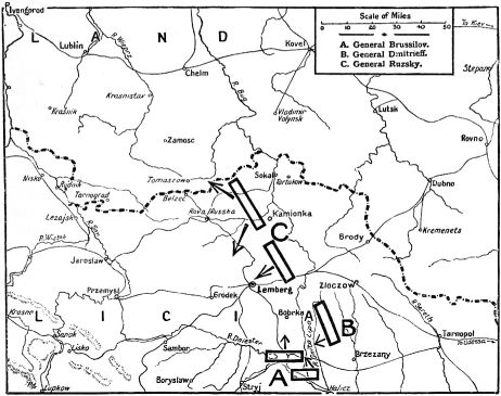 Less than ten miles to the north-east of Charleroi is the village of Ligny,[18] where Napoleon beat the Germans under Blücher on June 16, 1815, and forced them to retreat. On the same day Wellington beat Marshal Ney at Quatre Bras,[19] which lies a few miles to the north-west of Ligny; but because Blücher had retreated he was obliged to fall back to the field of Waterloo, where, as you know, he was joined by the Prussians, and an end was made of Napoleon. It was over this historic [25] ground that von Buelow's army advanced towards Charleroi.