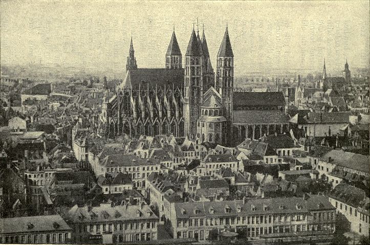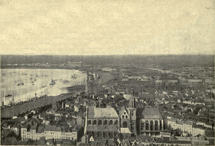 You can scarcely imagine a more picturesque town than Dinant. It stands on the right or eastern bank of the broad river Meuse as it sweeps northward from France to join the Sambre at Namur. The main part of the town lies at the foot of lofty limestone rocks, which are honeycombed with grottoes containing stalactites, or limestone "icicles," such as you may see in the caves of Cheddar[8] or Derbyshire. In the Grand'-Place, quite close to the foot of the limestone rocks, is the Cathedral of Notre Dame, a very handsome building with finely carved portals. Behind the cathedral there are four hundred and eight steps cut in the rock, by means of which you may ascend to the citadel which crowns the summit.