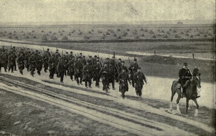 When Napoleon fell, Frenchmen turned in loathing from the work of war. They remembered the awful waste of life and the terrible misery which had resulted from his campaigns, and they longed for peace, during which they might build up the nation anew. The French army, therefore, became a mere shadow of what it had been formerly. Under Napoleon III., however, there was a revival of military spirit. His army, as you know, fought well in the Crimea[1] and in Italy,[2] but it suffered hopeless defeat in the war of 1870-1 against the Germans.[1] The French took to heart the fearful lessons of this war, and began almost at once to put their military house in order.