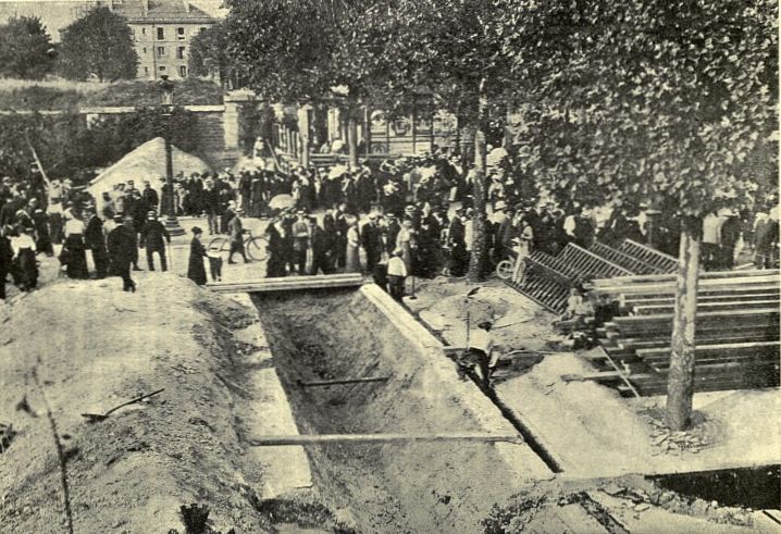 The Belgians had ten days' notice of the attack, and while the great siege trains of the Germans were slowly lumbering westward over the cobbled roads they did much to strengthen the place. About twenty-six thousand men were moved into it to hold the forts and trenches, large areas were mined, houses and trees in the line of fire were cut down, and barbed-wire entanglements, charged with a deadly current of electricity, were set up.