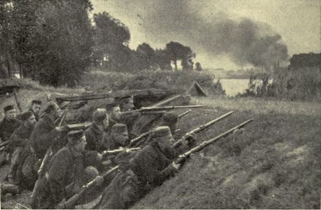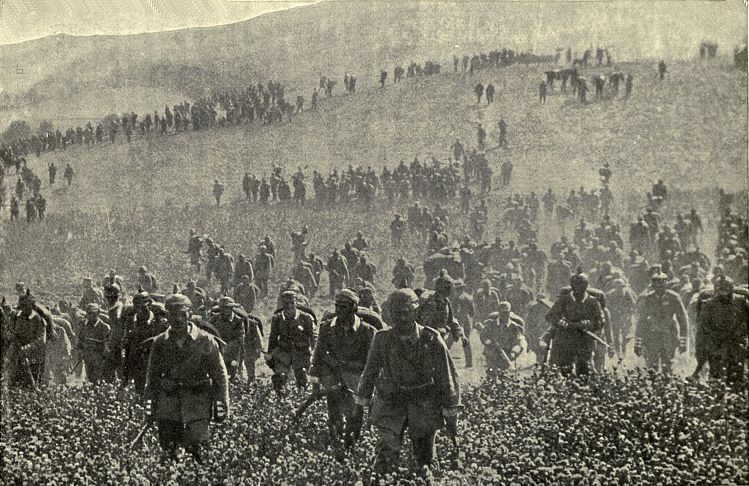 The Battle of Dinant, August 15, 1914. French infantry recapturing the town.