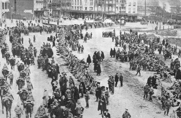 So Belgium was invaded, and this terrible breach of faith on the part of the Germans shocked all neutral nations. Great Britain had been the leading Power in neutralizing Belgium, and she could not in honour desert the little country which was ready to fight to the death for its independence. Nor dared she stand by with folded arms and see France overcome. A victorious Germany in possession of Antwerp and the Channel ports of France would be in a very favourable position to attack British shores. Should Germany become master of the west of Europe, the existence of the British Empire would be in dire peril. Britain, therefore, was compelled by dictates of honour and self-preservation to declare war on Germany.