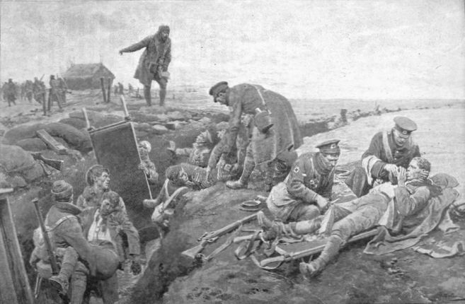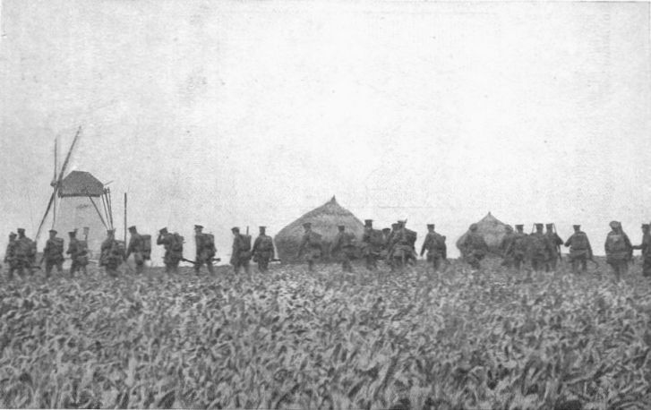 Now let us see how this theory bore the test of actual practice. You will remember that at the Battle of Mons and on other occasions the Germans made massed attacks on the Allied positions, and though their men were shot down in droves, they came on again and again, almost shoulder to shoulder. The theory that men can be so disciplined as to continue to advance in massed formation, even though they know that large numbers of them will certainly be killed or wounded, proved correct. Where the theory broke[19] down was in supposing that the men who survived the slaughter would be able to carry the position. On some occasions they succeeded, but in the majority of cases a swarm of Germans advancing against inferior numbers were reduced by one-fourth, or even by one-third, in the first few minutes of the rush, and the remainder were too few to drive out the defenders. So, as far as actual results were concerned, attacks in close formation proved to be a failure. The Germans, however, persisted in them, and this led to an immense wastage of life. They flung away life like water, but, as we have seen, they did not win that speedy victory on which they had staked so much.
