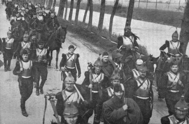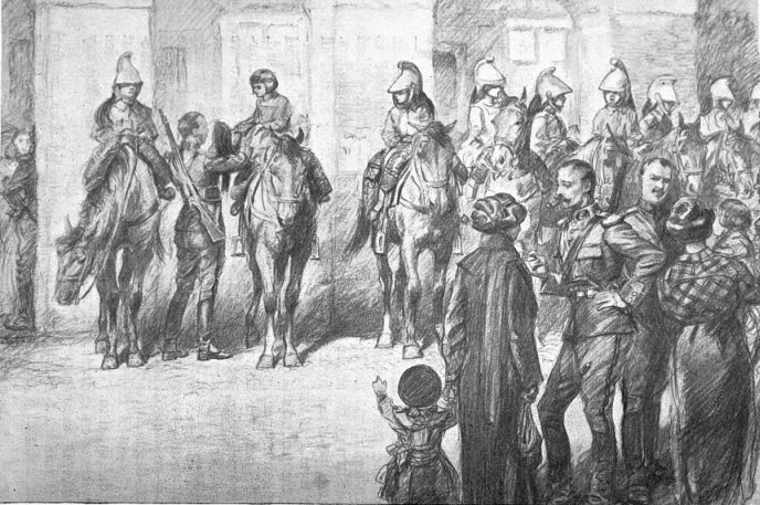 The object of the Kaiser was achieved—the quarrel between Austria and Russia was now likely to provoke a European war. Our Foreign Minister, Sir Edward Grey, worked night and day to bring the estranged Powers to peaceful agreement, and he so far succeeded that on the 30th July Austria showed signs of drawing back. At once the Kaiser saw that all hi[8]s hopes were likely to be shattered. That same evening he took steps which made war certain. He ordered Russia to cease all warlike preparations within twelve hours, and France within eighteen hours. Before France had returned an answer to this impudent demand, his Uhlans were over her border.