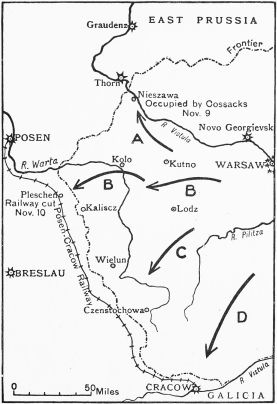 When von Kluck was near the outer fortifications of Paris he discovered that the German theory was all wrong. He was forced to swerve in order to follow up the French and British, and in the act of swerving he was caught, and forced to retreat. Thus that rapid success in the West which was the very keynote of the German plan of campaign was rendered impossible.