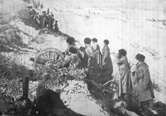 Montenegrin Artillery in Action. Photo, Daily Mirror.