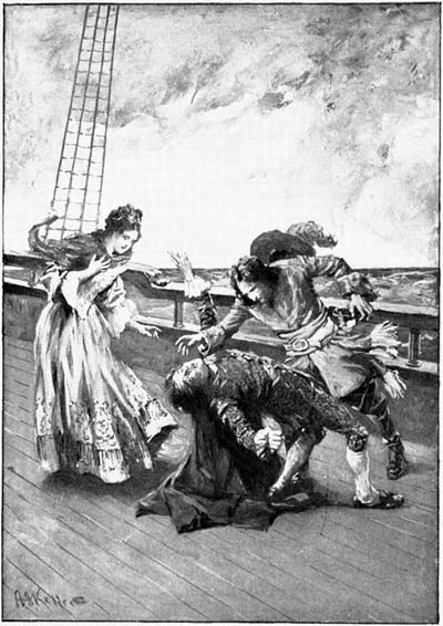 “They heard our guns at dawn across the sea, and saw my canvas flapping in the breeze,” he said, musingly. “At last, by chance, the King of France has done me a good turn! He owed me one, señora. My sword has served him well, but when it made a slip, which love itself forgave, he turned his face away, and left me, sweetheart, with no land to call my own!”