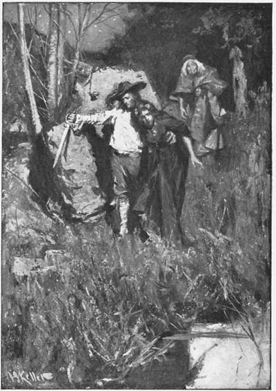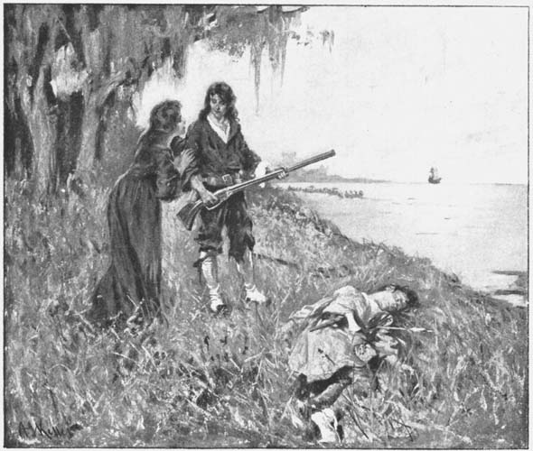 “Gar!” exclaimed Barbier, as he raised his gun to his shoulder. “Service with de la Salle was hard, but ’twas easier than death. But, then, ’tis time for me to die. When a wandering outcast from the Court of France comes here to tell me what will happen in the woods—and, pardieu, he told me true—there’s nothing left in life for poor Jacques Barbier!”