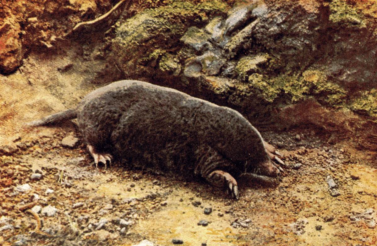 Moral writers used to commiserate the poor blind Mole for having to expend its energies in ceaseless toil in the dark underground, and then rhapsodise on its marvellous adaptation to its rôle in nature, getting lost in admiration of the mathematical skill displayed in the construction of the "fortress" they had never seen and which was largely an imaginative piece of engineering. It is true that its body may be said to fit the tunnels it has excavated, though it might be more accurate to say that the tunnels are modelled upon and by the Mole's form, for it is the constant passage of the animal backwards and forwards that smooths and consolidates their walls. The sense of sight is of less importance to it than that of smell, which is apparently its most highly-developed sense, though that of hearing is very acute.