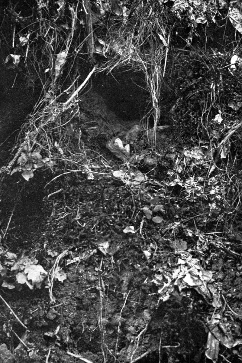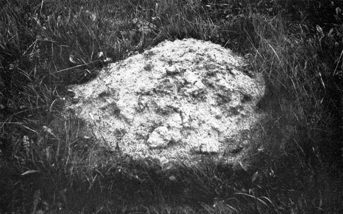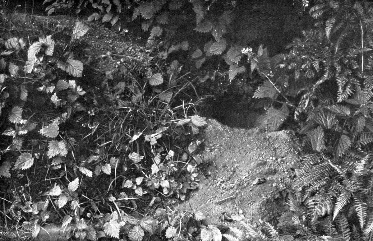 But even in those cases where there is some approach to the plan of the old diagram, Mr. Adams found that it was clearly not due to any scheme for constructing a baffling system of bolt-runs for defensive purposes, but purely incidental to the work of excavating the nest cavity and getting rid of the material dug out. The easiest way to dispose of this redundant earth is to push it to the surface, and to do this a tunnel has to be made above the nest cavity. This, as a rule, is originally only from two to six inches below the surface, but the hoisting out of the surplus earth causes the formation of a solid dome of considerable thickness above it. The tunnels thus made to get rid of earth usually end in blind terminals, and would not be available for escape in the case, say, of the "fortress" being entered by a Weasel. It is notable that in the only one of Mr. Adams' plans that approaches nearly to the old figure there is no connection between the "galleries" and the nest cavity.