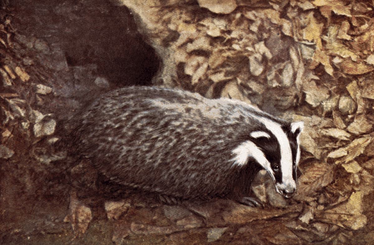 [Pg 10] The winter time is spent as a rule in continued sleep; though he has been known on mild nights in winter to wake up and prowl around for the very few good things then to be found. But he is no intermittent hibernator like the Squirrel and Dormouse; therefore he makes no provision by laying up winter stores, which are only possible for seed-feeders. For his winter retreat he looks out for a hole in the bank—perhaps one that has been gradually enlarged by a colony of wasps to accommodate their continually increasing nest—and this he lines with dry leaves and moss, carried in by the mouth. Then he snuggles into his bed and goes to sleep until the spring.