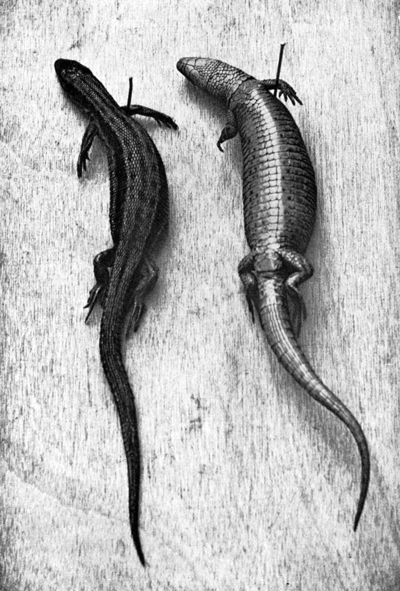 In view of the practice usual in natural histories of arranging the vertebrate animals in a series with the Birds separating the Mammals from the Reptiles, it may at first sight appear incongruous to bring the latter classes together as we have done; but to the present writer the fitness of this arrangement is quite clear. It is widely held that the Mammalia—the highest class of vertebrates, and therefore the most complex of all animals—have been evolved from an extinct group (Theromorpha) of Reptiles, whose remains are found in strata of the Permian and Jurassic Periods. There are, it is true, similar evidences [Pg 4] furnished by the rocks showing that the Birds had a reptilian origin; but the Birds did not form an evolutionary stage between the Reptile and the Mammal, but evolved side by side with the latter.