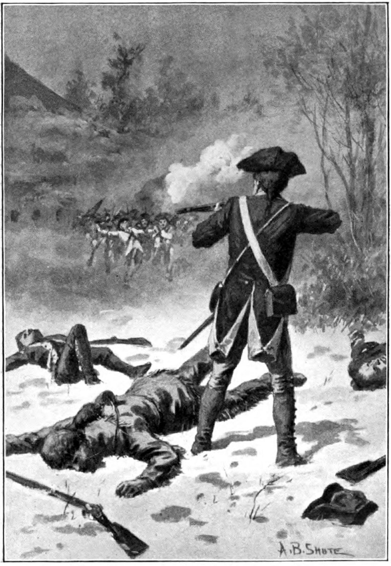 As both of the young soldiers had surmised, it was an easy matter to prove Henry innocent of the charge that had been made against him, and in the end he received not only a full pardon from General 307Murray, but also a letter exonerating him from all blame. For the despicable part he had played Prent was sentenced to five years in an English prison, and with him went Fenley and Harkness for a period of three years. Louis Gaulette became Henry’s firm friend and it may be mentioned here that, years later, Gaulette entered the American army under General Lafayette and served as a spy for Washington during the last years of the War of Independence.