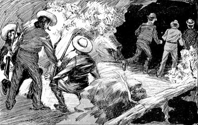 "Come on! There is no use of our staying here longer!" cried Benson, and led the way across the plain, now lit up by the conflagration beyond. He forced Potts with him.